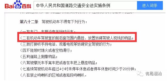 3、车内后视镜上的各种悬挂物