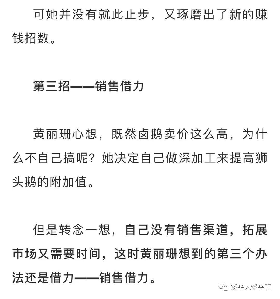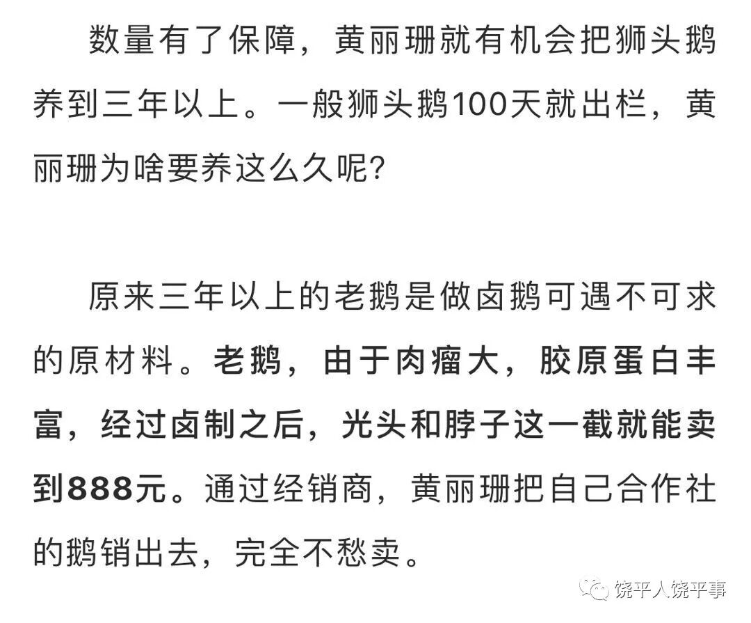 于是,俩人一拍即合,一个负责供货,一个负责加工销售。卤制之后,一只老鹅的头和脖子卖价888元。2017年,黄丽珊的狮头鹅销售额达到了2000多万元。