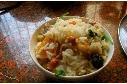 立冬吃“炣饭”的习俗早在远古时期就已经出现了,起源于秋天是收获的季节,感恩的潮汕人用从地里收获的各种食物做成炣饭。一来,拜祭祖先,叩谢神明,二来,也取“平安”“丰收”的意头。俗语说“十月十吃炣饭”,“吃炣饭、保平安”。10月初是新米上市的时候,加上正当时的白萝卜、小蒜、新鲜的猪肉等,一道简单美味的炣饭就做成了。据介绍,“炣”是指烹饪的方式,指用火烧,它体现了潮菜丰富的烹饪方式。炣饭的材料按各人喜好搭配,常见的有虾米、猪肉、芋头、菜头、腊肠、香菇、板栗、花生等,在米饭将熟时将物料放入一起焖熟就可以了!