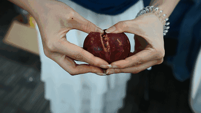3、挑选山竹要看底部蒂瓣,有几个蒂瓣里面就有几个瓣,一定要挑选软的,软的是已经熟了,千万不要挑选硬的,硬的里面已经坏掉了!