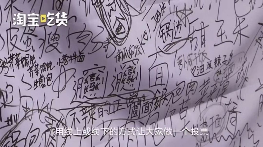 海报上密密麻麻地写满了各色菜品,其中不乏“亮点”。比如,有人点了“佛跳墙”,有人特别注明要“西红柿炒蛋,咸的”,有人写出了让无数网友佩服不已的“biangbiang面”。