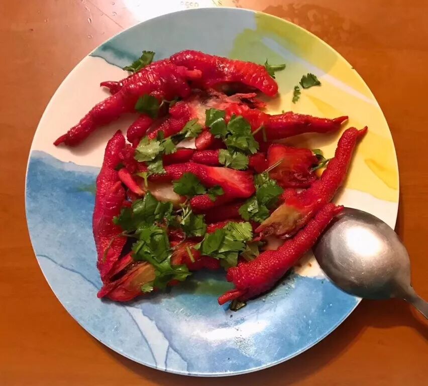 不过,对小孩来说,大家最喜欢的还是啃鸡爪。鲜红的爪子肉质很脆,还带着酒的醇甜清香,啃完后嘴里还会残留一口爽净的味儿。