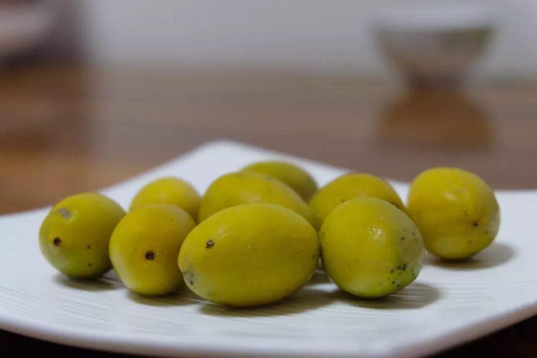 这个品种的橄榄尾部呈三棱状,表皮光滑,颜色金黄,肉质爽脆又不粘核,嚼起来甘甜而少涩味,还没有残渣。难怪这么多人爱吃呢!