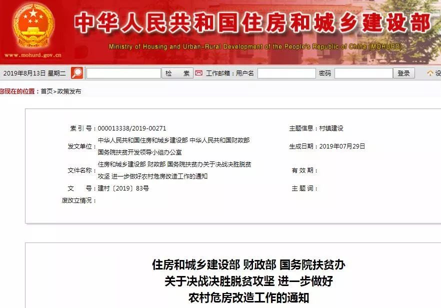 近日,住房和城乡建设部、财政部、国务院扶贫办联合印发《关于决战决胜脱贫攻坚 进一步做好农村危房改造工作的通知》。