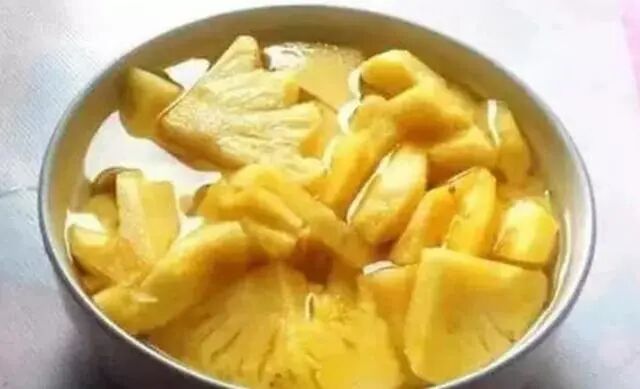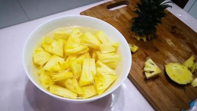 最好就是将水烧开晾凉,再按比例加入食盐搅拌均匀,最后放入菠萝浸泡最为合适,而且水烧开之后,由“硬水”变成“软水”,其中很多金属离子去除,泡出的菠萝口感更棒更香甜!