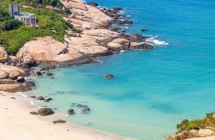 海岛巨石遍布,海岸线延绵20多公里,有八个海湾和数十个洲,海水质量高。海滩上软细洁白的海沙含沙量高达99%,被誉为“绿色翡翠”和“天赐白金堤”。