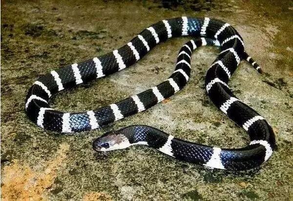银环蛇俗称背基峡、白节黑等,毒性极强,为陆地第四大毒蛇。一般很少主动咬人,但在产卵孵化或有惊动也会突然袭击咬人,同时也有趋光性,晚上有光地方,它会一直往光地方爬追赶,甚至攻击拿电筒的人,银环蛇毒素是神经毒素,患者被咬时不会感到疼痛,反而想睡,所以银环蛇咬伤死亡率极高,银环蛇不知名但很致命!