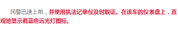 民警调取了车辆的行车记录仪后发现,对向来车的远光灯对司机的视线干扰极大,结合现场勘查,民警认定驾驶人胡某会车时因对向车辆远光灯照射引起视觉障碍,未能及时判明前方情况降低车速确保安全行驶,是此次事故发生的主要原因。