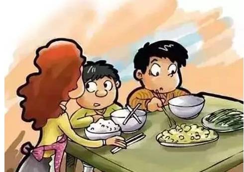 2、全家人围坐一起吃饭,大人未动筷子,孩子也不能动。