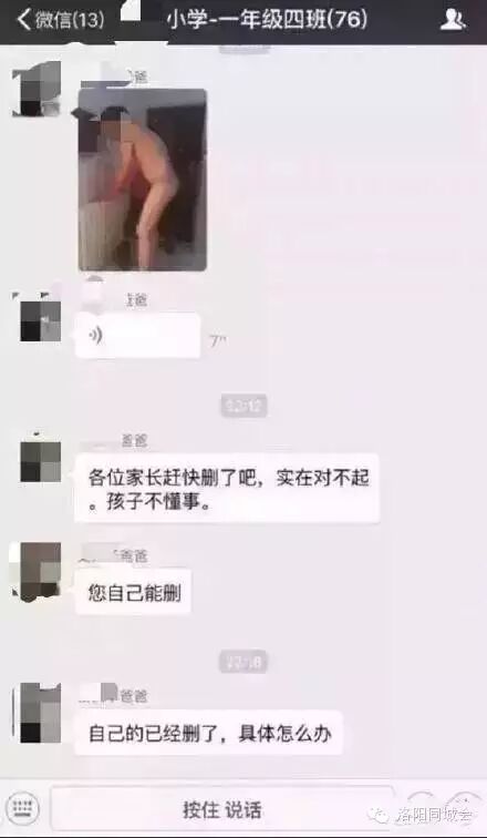 网友称,一名一年级小学生因不写作业被老爸教训,气愤之下,趁老爸洗澡,拍下裸照传到班级家长群。事后家长在群里四处灭火道歉,称小孩不懂事闹着玩。