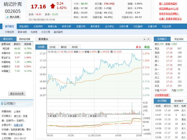 2011年8月5日,姚记扑克在深圳证券交易所A股成功上市,股票简称:姚记扑克,股票代码:002605。