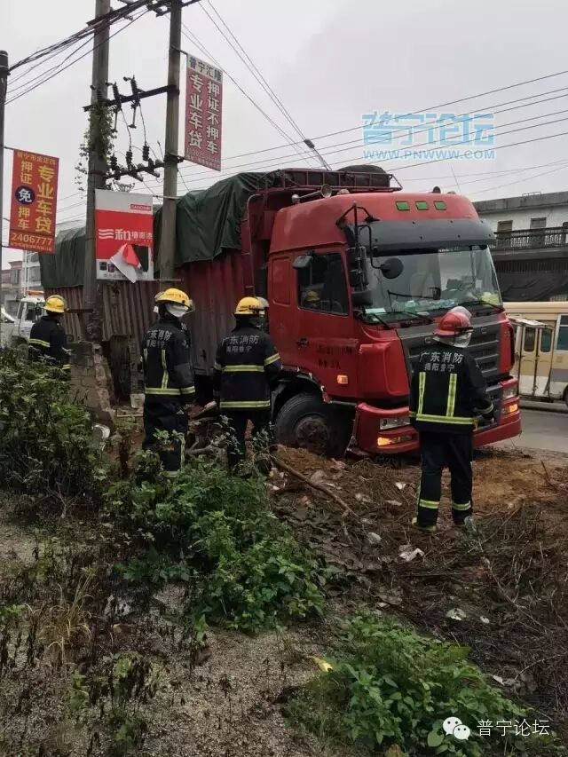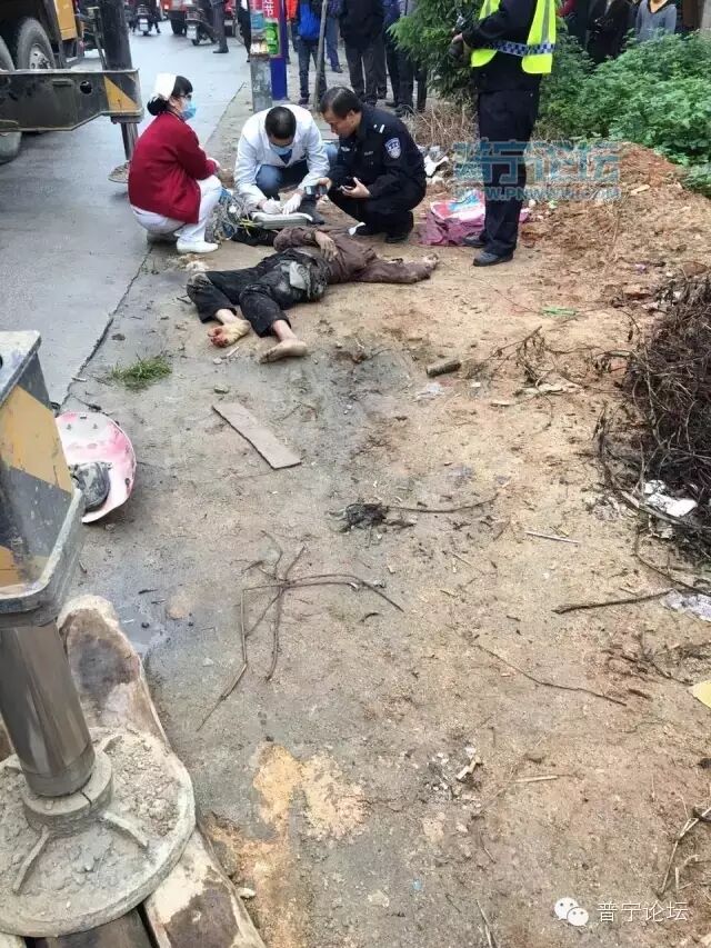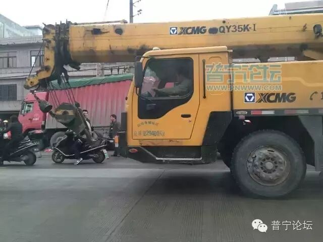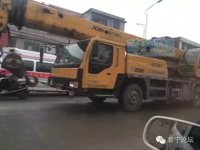 事故发生后,交警和当地消防员均在现场调查处理事故,一辆吊车正在扶正大货车。希望伤者康复。