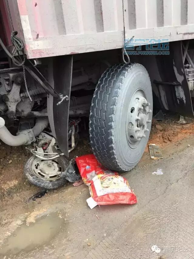 27日上午,梅塘发生一宗交通事故,一辆大货车与一辆电动车碰撞,电动车被辗压成废铁,现场疑似一名男子受伤。