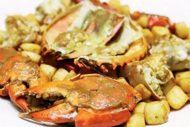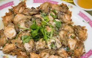 此菜誉为十大潮菜之一。螃蟹鲜香入味,金黄的膏质柔滑美妙。配菜蒜头才是真爱,炸得粉香,一口一个绝对过瘾。