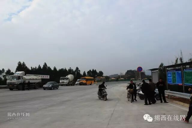 汕湛高速揭西段于2015年12月30日早上八点三十八分正式开通。早上八点左右,现场就有车辆在等待通行。