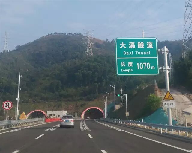 过了大溪隧道,可行驶的揭博高速就没几公里了(后面的还在建设中),159公里处靠右接入甬莞高速。