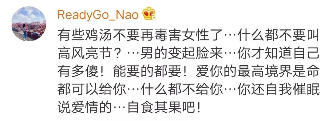 @Maxene:连彩礼都没了…婚前婚后女生都没保障,我干嘛要结婚生孩,自己赚钱过的好好的,嫁了还要面对婆媳关系七年之痒生孩过鬼门关累成狗的家务活,这样全能还不如干一番事业。