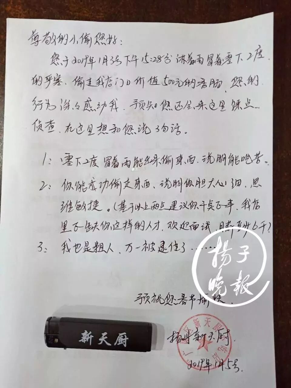 写这封信的老板吴军告诉记者,每年冬季,店里会自制五千斤左右的香肠并晾晒在饭店门口,一方面作为店里的菜肴,一方面也对外出售。这次小偷拿走的是其中一串,大约有十五六斤,价值约500多元。