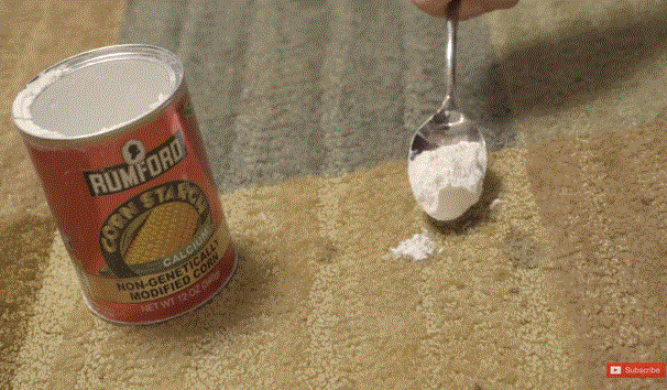 首先,把面粉倒在沾上了污渍的地方,用勺子轻轻按压,等待几分钟~