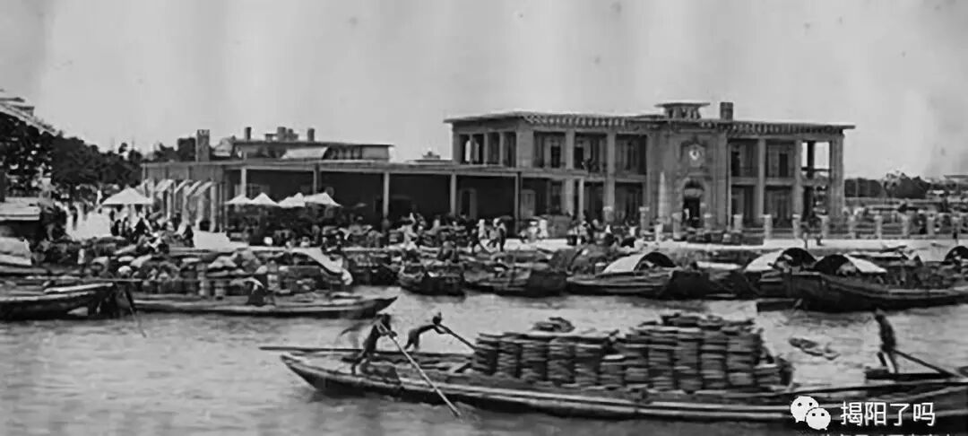27、20世纪20年代时期,汕头海关钟楼与繁忙的汕头港码头情景。自1861年汕头开埠后,至20世纪20年代,汕头商贸达到了繁盛时期。