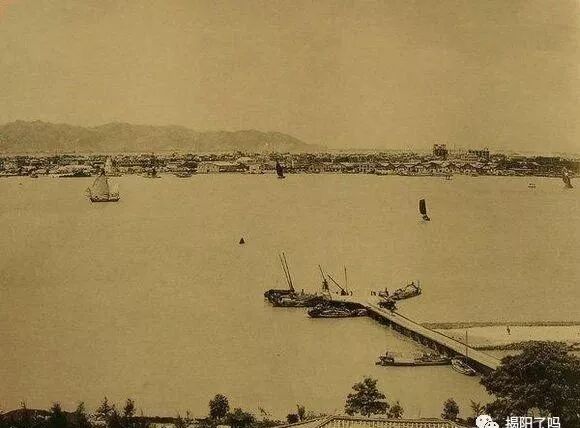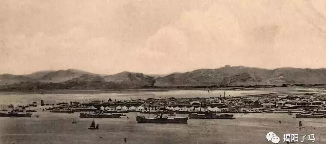 10、1907年从船上所拍摄的汕头湾,礐石山清晰可见。