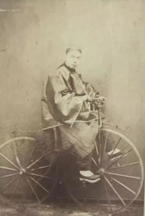 2、郎费罗在中国旅行时收集到拍自汕头棋盘街华兴照相馆拍摄的晚清骑自行车潮人相片。