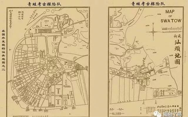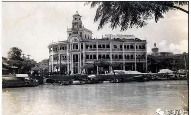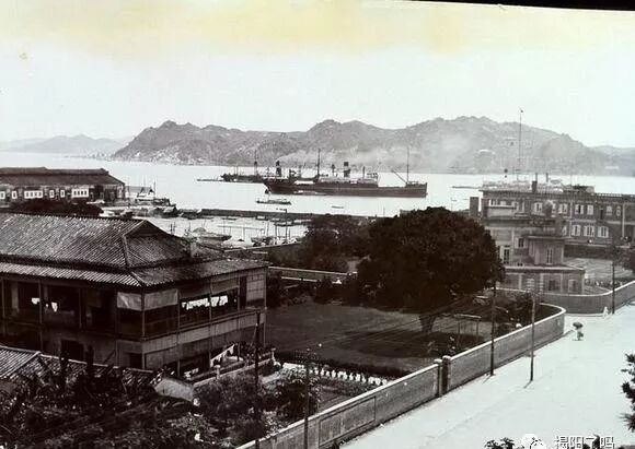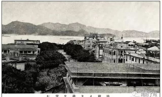 42、抗战时期的汕头港,左为海关宿舍大院,右为日本台湾银行汕头支行。