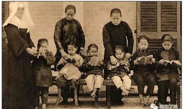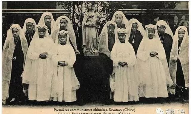 15、汕头早期一群初领圣餐的年幼天主教徒,d 领圣餐礼时,他们必须穿白礼服披白纱。
