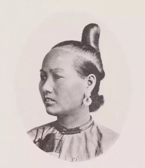 1、1868年拍摄的扎着发饰的棒缒式发型的潮汕妇女。