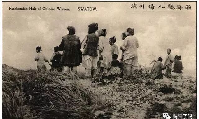 21、1910年代,潮汕妇女观海图,她们在出嫁之后都打起了脑后髻。