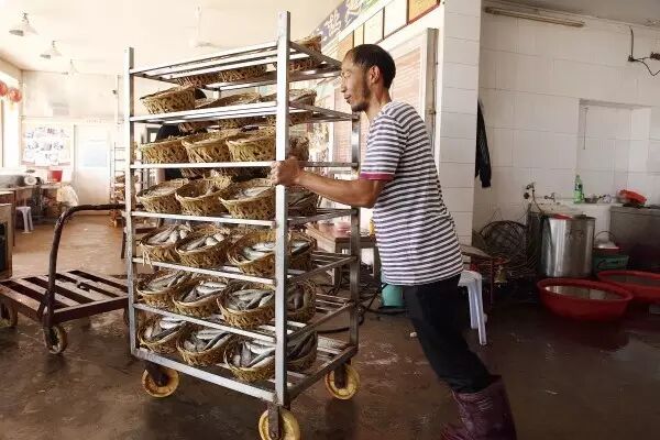 最常用的鱼是巴浪鱼,便宜,一拃多长。腌鱼的人每四个小时给小鱼翻个面,这样鱼肉渗下的汁水会在鱼皮内部形成一层均匀的鱼冻。