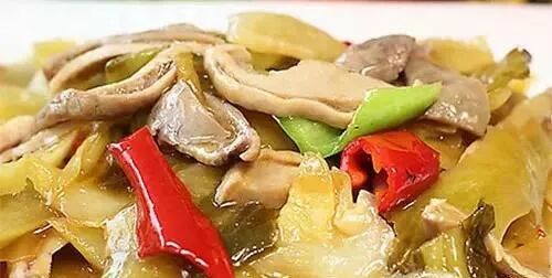 三顿煮食,时常可见酸咸菜的身影。炒肉类可加辣椒炒肚肉(花肉),牛肉腌制勾芡炒后撒南姜麸,也可以炒猪肚、猪肠、猪肝、鸡肣等口味重的禽畜腹内,祛臊解腻。合海鲜可炒厚尔(鲜鱿鱼)、花蚶、剃皮鹿(扒皮鱼)等等,也可焖海鳗、魟鱼、豆腐鱼,用以去腥增味。酸菜焖海鳗凉却后放冰箱,由于鳗鱼煮后分泌特殊胶质,冷冻后后形成一层透明的果冻状物体,口感特别,“鳗鱼冻”也是潮菜的保留菜式。炣鱼的话可以加豉油,炣鲤姑、鲫鱼、巴毛(过山鲫)等,与外面流行的酸菜鱼不同的是,酸咸菜炣鱼并没有一大锅油和一大堆辣椒,也算是重口味中的小清新。煮汤可配车白、大蚝、花蚶、?鱼(豆腐鱼)等,做法大致相同,水滚落食材、酸咸菜(切片)、姜丝,起锅撒芹菜,鲜美开胃,是夏日常见的汤水。酸咸菜和白果、胡椒粒炖出来的猪肚煲,温润可口,香浓暖胃,是一味冬日佳肴。