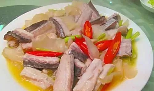 潮汕菜多海鱼,烹调中咸梅也多有用处。海鱼如斗鲳、金鼓、乌鱼等可加咸梅生炊,河豚、三黎等适合加咸梅煮,午笋可切块煲咸梅,所配无非姜丝、芹菜和普宁豆酱,视食材不同酌情添加。淡水鱼中的“白煠鲤姑”,其实就是用咸梅煠鲤姑,鲤姑整条略煎后,入锅加水没过鱼身,放咸梅与姜片炖熟即可。作用跟放酸咸菜相似,主要是去腥増味。