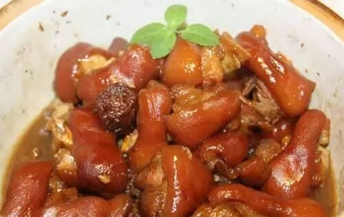 煮肉类主要有咸梅焖猪脚和梅汁蒸排骨,尤其咸梅焖猪脚,也是颇有名气的特色潮汕菜。
