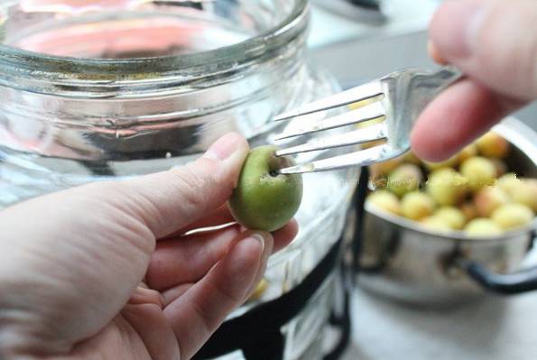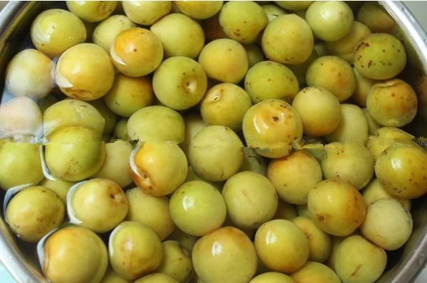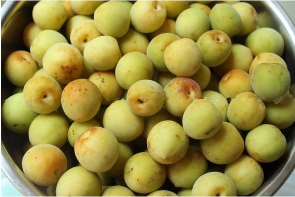 新鲜采摘的青梅可进行加工腌制,以青梅最佳