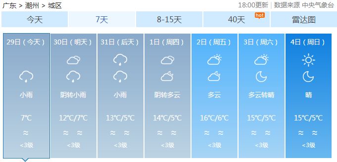 受强冷空气影响,28日到31日,我省有一次中雨局部大雨过程,其中粤北高寒山区有冻雨或雨夹雪;各地日平均气温将下降6℃~8℃,有大范围低温和冰(霜)冻,高寒山区最低气温可达零下4℃左右;我省江河湖面和沿海海面风力将加大到6级以上。