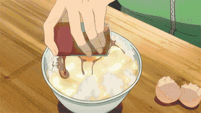 3、加上适量猪油, 柴鱼丝或鱿鱼丝,撕碎了撒在米饭上面;