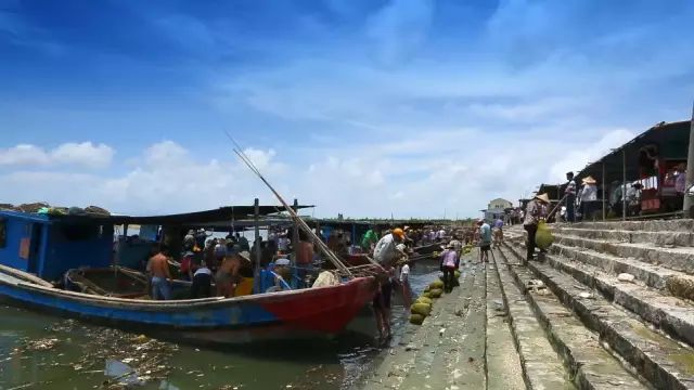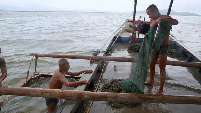 海产品的收割来之不易,薄壳米也不例外,为了保证中午前进入市场,通常凌晨3点就开始捕捞,11点前结束劳作。想想半夜在漆黑的大海里,四周一片安静,只有噗通噗通的跳海声和短暂的吆喝声是何等的震撼。