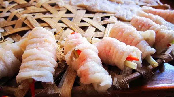 鲜活的优质鱼刮去骨,绞打成肉酱,然后加上配料搅拌成糊,直至成为胶,配上芹菜和辣椒,这道以清淡又鲜美著称的小吃,也是潮汕菜系的代表。