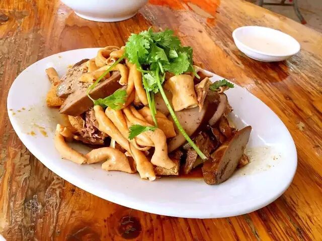 一道不管新老潮汕人都有口皆碑的猪脚,咬下去Q弹,那胶质几乎可以粘住你的牙,卤汁很入味,它和热白饭是完美搭档。