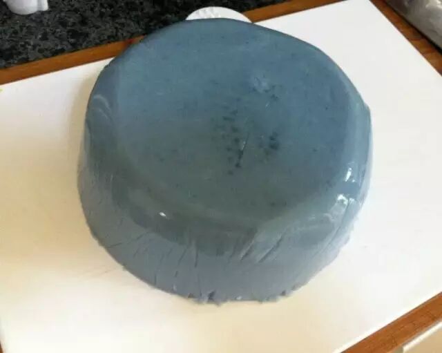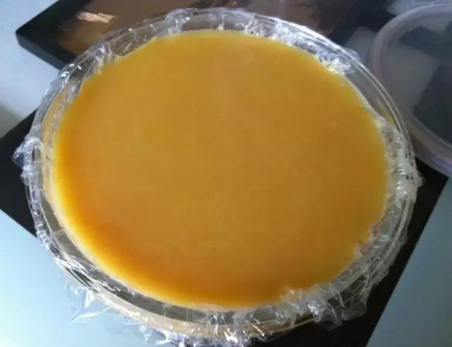 8、容器内铺上保鲜膜,便于倒出不粘容器