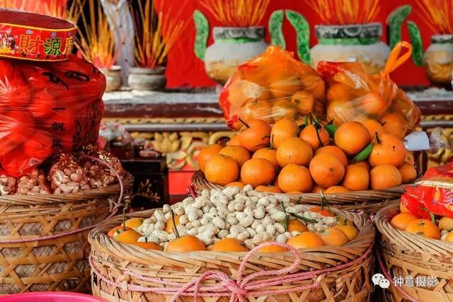 新婚和添丁的村民中午就开始准备,抬来的大桔、花生一筐又一筐。