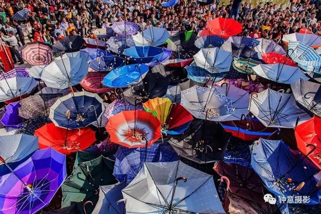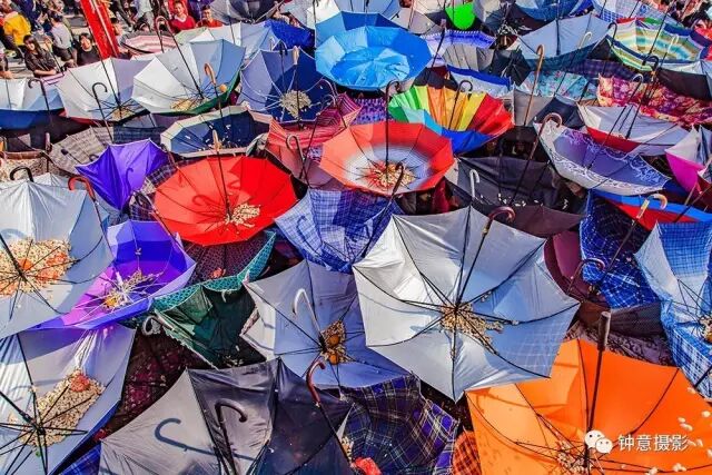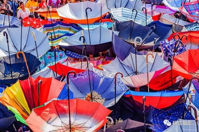 五彩缤纷的雨伞光彩夺目。