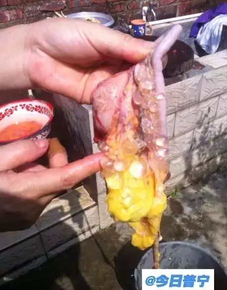 昨天早上,普宁一网友杀鸡时在鸡内脏中取出一个白色的、软软的、样子奇怪的异物,因自己从来不曾见过,也不曾听说过,觉得有点稀奇,故前来跟小编报料。