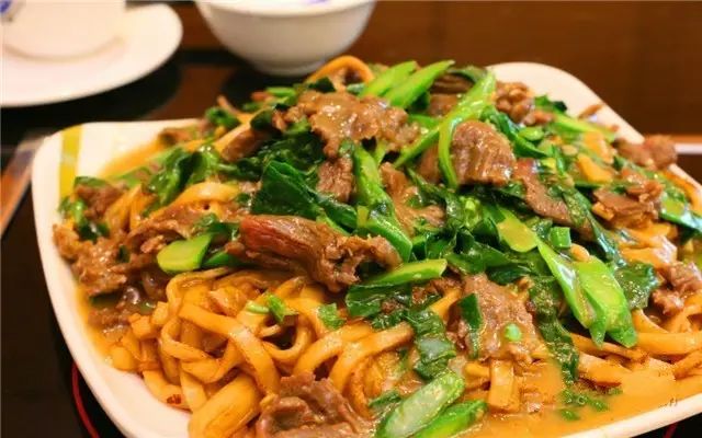 炒粿条,有荤炒和素炒,最有名的还是牛肉炒粿条,这道菜看起来简单,却极其考究烹饪水平,牛肉需要逆着切成片,然后用白糖腌制20分钟,一定要20分钟后才能加油、生抽等调味,这时候千万不能为自己带盐,一放盐就出了水分,牛肉就废了。
