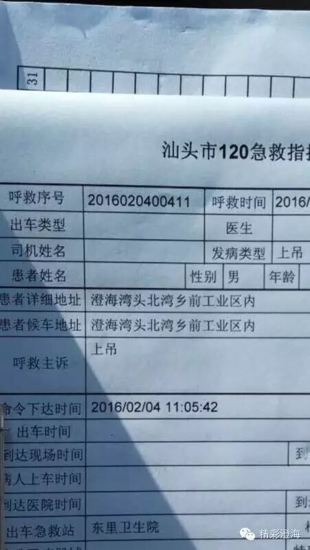 今天上午,在澄海湾头北湾乡前工业区内一玩具工厂,惊现两名男子上吊身亡,场面令人十分揪心!具体详情请以官方通知为准!