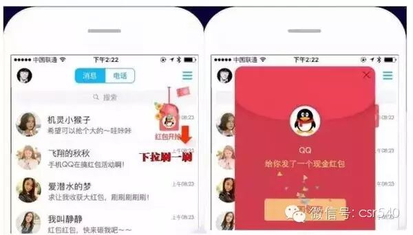 据悉,春节期间QQ红包将继续沿用广受欢迎的“刷一刷”姿势。在红包发放期间,用户只要打开手机QQ进入到主界面,就可以得到红包的实时提醒并加入抢红包大战。