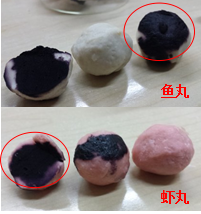 记者将市场和超市购买了速的冻鱼丸、虾丸、蟹棒、千层豆腐、鱼豆腐解冻后切开,并滴入碘液,发现所有肉丸全部变蓝(因为碘遇淀粉会变成蓝色),这说明这些肉丸中几乎没有肉。