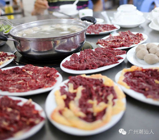 在潮汕吃牛肉火锅,原料一般都是用当天现杀的新鲜牛,潮汕人对牛肉新鲜原味大道了一种近乎苛刻的状态,并且讲究清淡,保留了牛肉本身的口感。