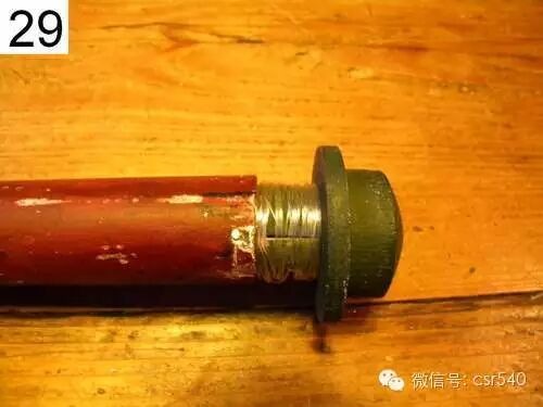 ● 把钉头剪断,还是用电磨把这些地方打磨光滑。你大概注意到我在那木质的部分绑上了鱼线——因为我发现它开裂了,而绑上之后它就不会继续裂了。